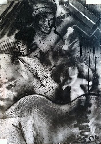 spraycan, marker, copper on coated canvas, 50x70cm, 2016