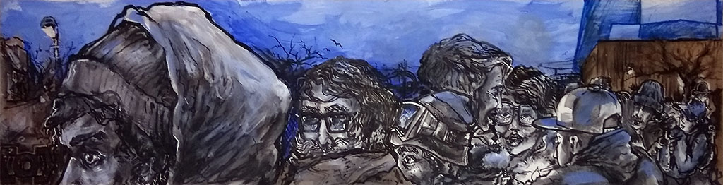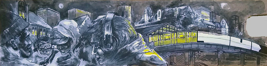 dispersion/​spraycan/​acrylic on canvas, 71x200cm, 2016